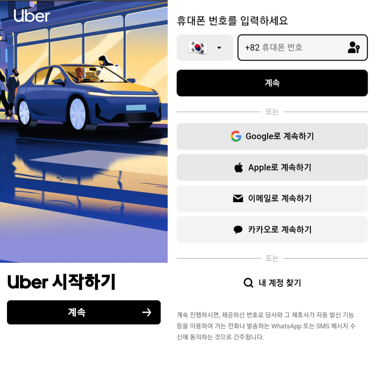 3) Uber 시작하기가 나오면 '계속' 을 클릭합니다.